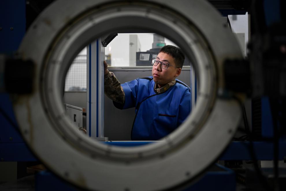 王江帆进行射线检测。刘明松 摄